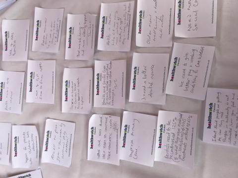 Many people came to us to share their suggestions on issues that the local NHS should be focusing on. Some of the suggestions were better dental service, better pay and working conditions to care workers, face-to-face access to GP services, support for parents with children with disabilities, more elderly support, diabetes awareness and increased funding to NHS.